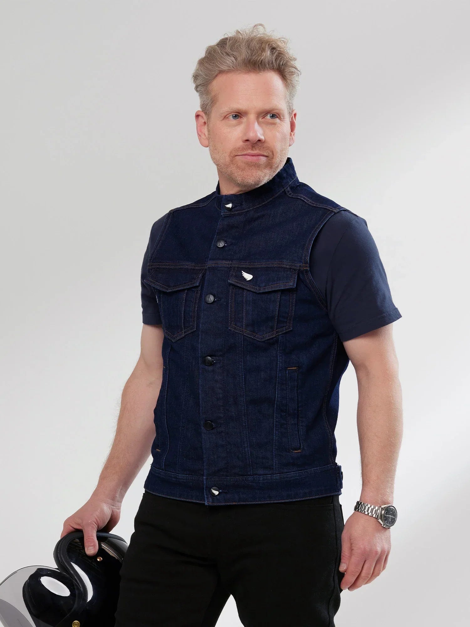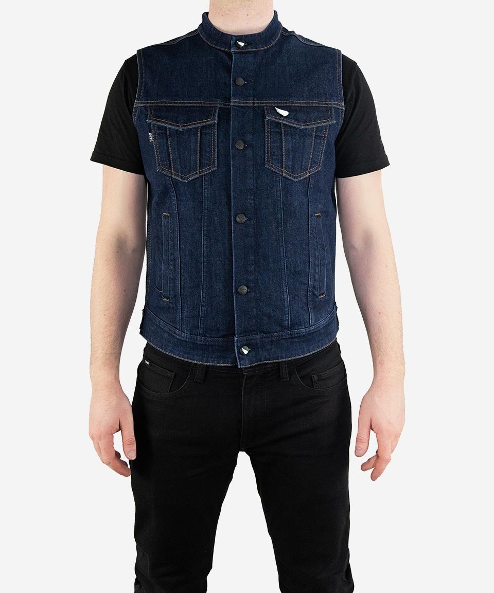 The SA1NT denim vest is 5 times tougher than a standard denim vest, with comfort stretch and 360º impact, burst and abrasion resistant. This new SA1NT denim vest will be living life with you for a long time to come.