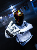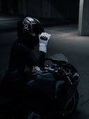Crafted from premium leather and CE Level 1 certified, these gloves offer a gloss carbon fibre knuckle protection, padded palms, and a timeless fit. Perforated panels enhance breathability, while touch screen compatibility keeps you connected on the go. Reflective piping adds visibility for added peace of mind.
