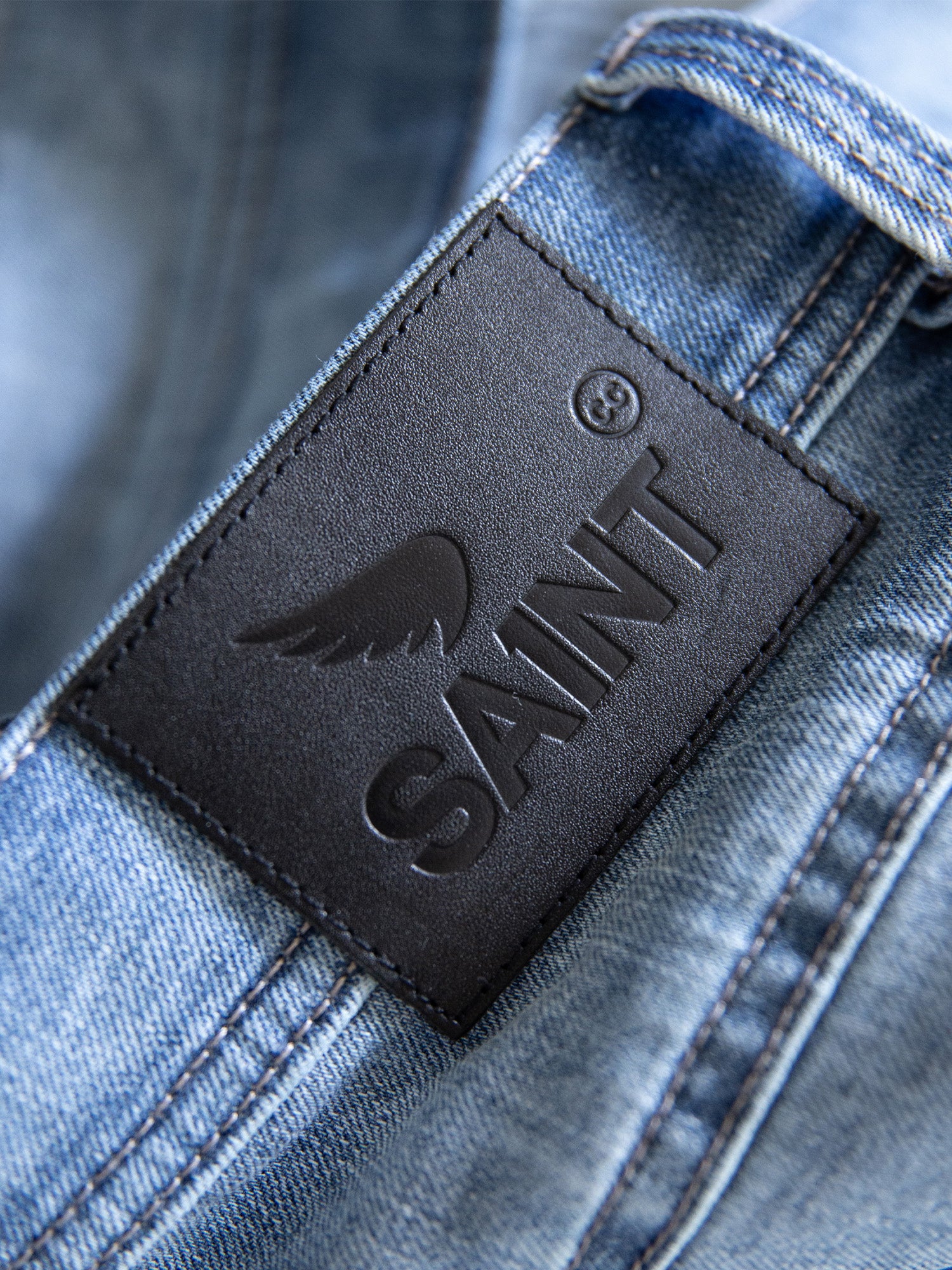 + SA1NT branding on leather patch and embroidery